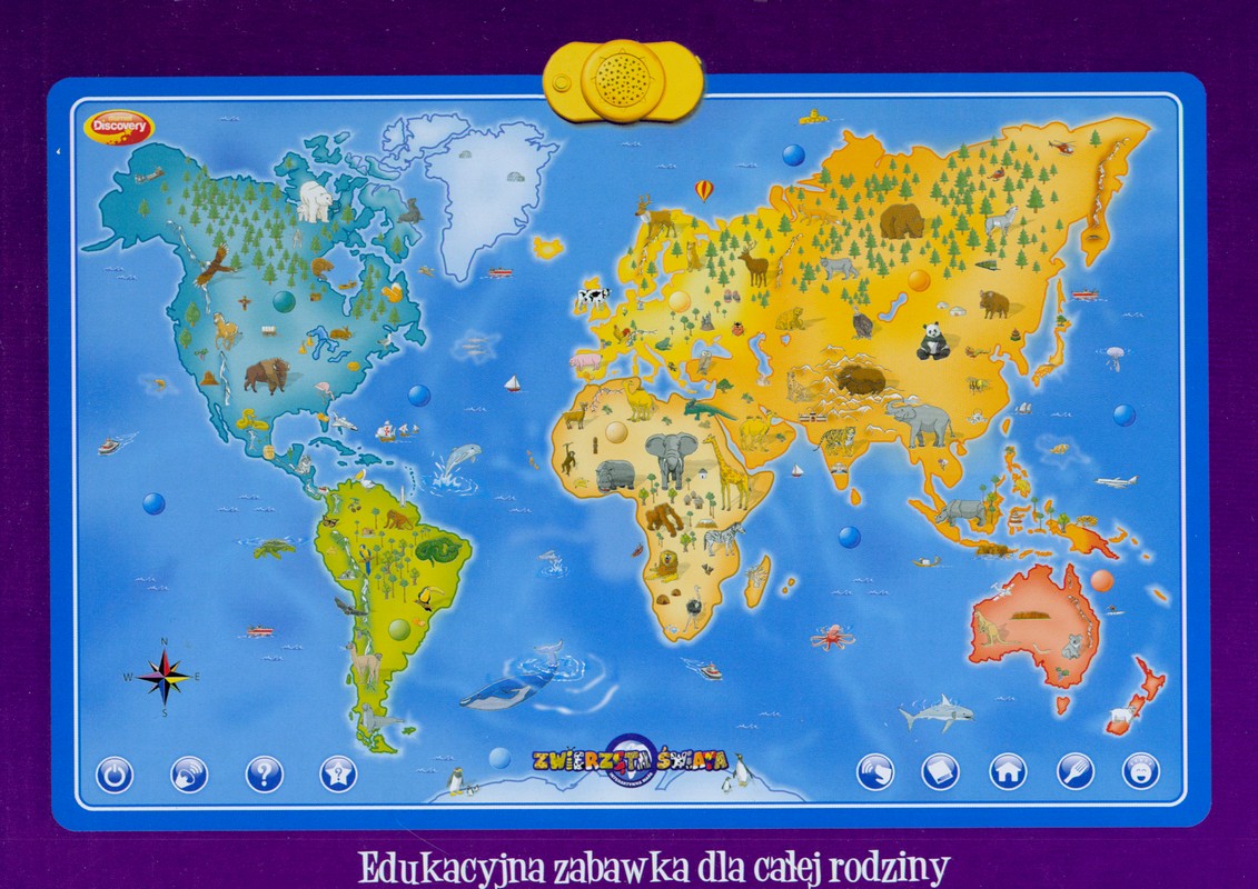 Zwierzęta świata : interaktywna mapa. - Dobre Miasto : Dumel - Marcin Domeracki, [brak roku]. - 1 mapa : wielobarwna ; Całość w twardym pudełku.