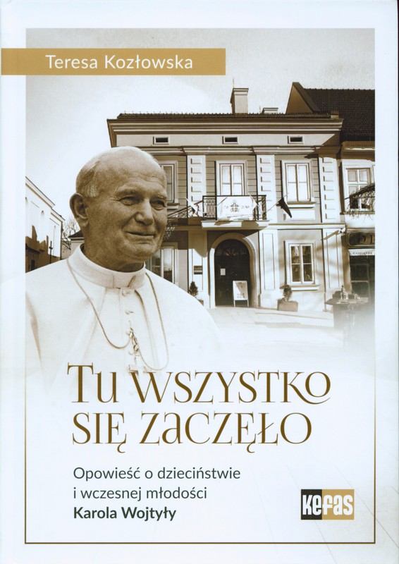 Tu wszystko się zaczęło to zbeletryzowana opowieść o dzieciństwie i wczesnej młodości Karola Wojtyły spędzonych w Wadowicach. To tu przyszedł on na świat. Tu również formowała się jego fascynująca osobowość, a atmosfera rodzinnego miasta miała bez wątpienia duży wpływ na kształtowanie się charakteru przyszłego papieża. Opowieść Autorki rozpoczyna się w chwili narodzin Lolka. Towarzyszymy mu zarówno w bolesnych doświadczeniach, jak przedwczesna śmierć matki, jak i w chwilach szczęścia i radości. Poznamy wiele nieznanych faktów z dzieciństwa i wczesnej młodości Karola Wojtyły, a także jego zainteresowania i pasje – miłość do literatury, radość, jaką sprawiało mu tworzenie poezji i nauka języków obcych, fascynację teatrem. Książka pokazuje relacje, jakie łączyły młodego Wojtyłę z rodziną a także z kolegami i koleżankami. W tym czasie rodziły się przyjaźnie, które przetrwały do końca życia papieża. Spotkanie z Karolem zakończymy w momencie, gdy wraz z przyjaciółmi i znajomymi, żegna pewien etap życia, by wstąpić w dorosłość. Młodzi ludzie zaciekawieni tym, co przyniesie przyszłość, wierzący w ideały, pragnący spełnienia marzeń, nie mogli przewidzieć, iż rok później wybuchnie II wojna światowa, która pochłonie tak wiele ofiar i zniweczy wszystkie ich plany. Karol w towarzystwie ojca opuścił Wadowice, ale często tu powracał, a miłość do tej małej ojczyzny pozostała w jego sercu do końca życia. Ta wciągająca historia, ukazująca postać niezwykłego Polaka, uzupełniona została wyjątkowymi fotografiami z rodzinnego albumu Karola Wojtyły i jego rodzinnego miasta. Dzięki nim jeszcze łatwiej przeniesiemy się do Wadowic, miasta, gdzie wszystko się zaczęło.