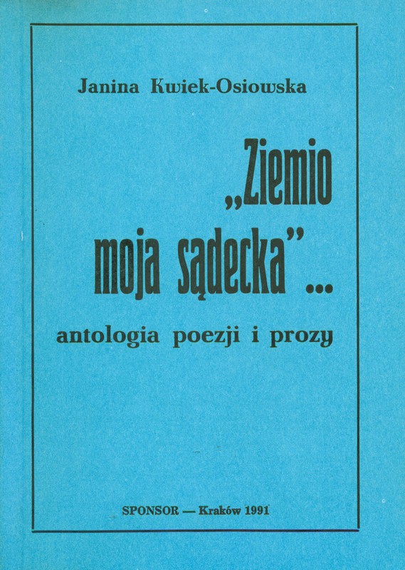 Antologia "Ziemio moja sądecka" prezentuje dziewięćdziesięciu autorów, jest nie tylko przeglądem stu osiemdziesięciu ośmiu utworów literackich, dawnych i współczesnych o Sądecczyźnie, lecz także legend, opracowań popularno-naukowych i tekstów publicystycznych. Mam nadzieję, że pozwoli to Czytelnikowi poznać burzliwe dzieje tej Ziemi, cechy ludzi tutaj mieszkających, oraz specyficzny klimat życia tego zakątka Polski. Od Autorki.