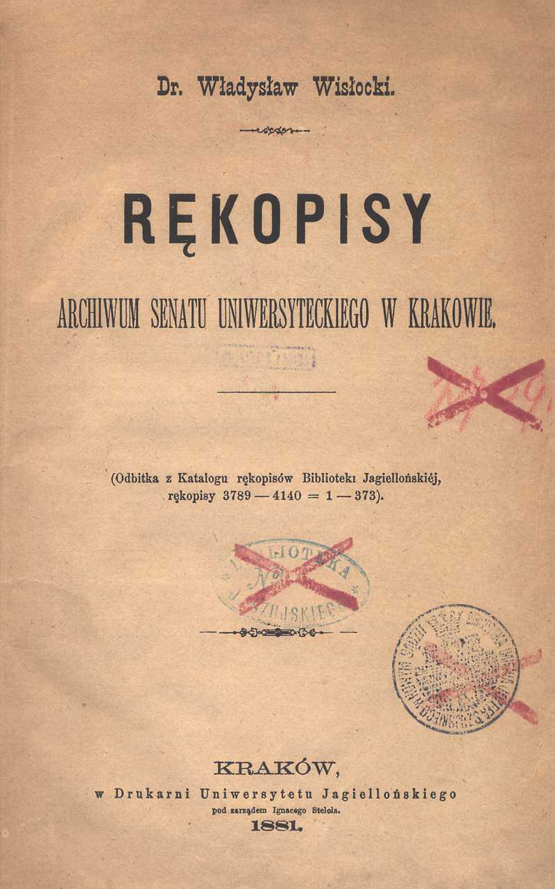 Odbitka: Katalog Rękopisów Biblioteki Jagiellońskiej. Rękopisy 3789-4140=1-373.