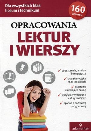 Na okładce: Streszczenia, analiza i interpretacja, charakterystyka epok literackich, diagramy ułatwiające naukę, wszystkie wymagane lektury i wiersze, zgodne z podstawą programową. 160 utworów.