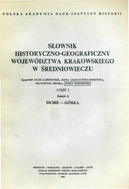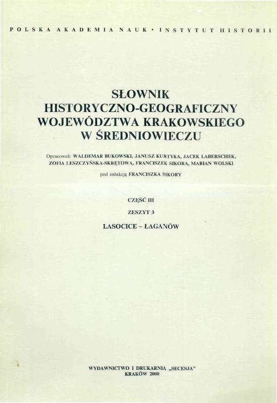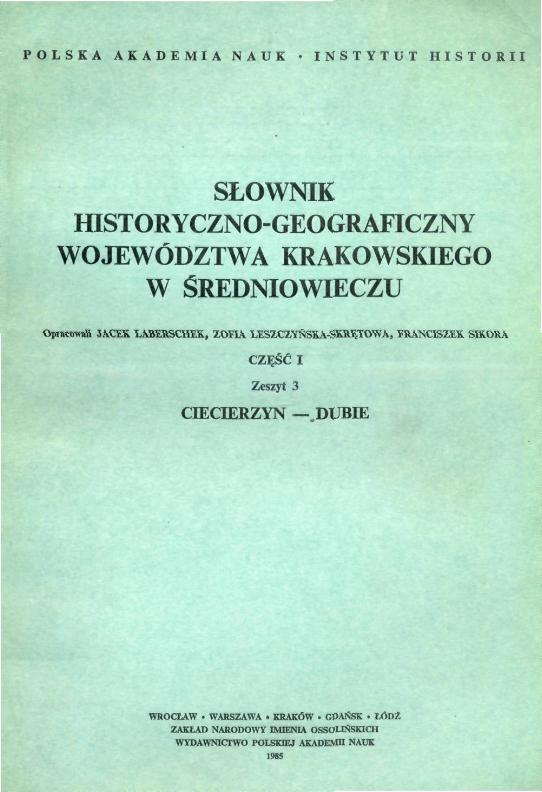 (Słownik historyczno-geograficzny ziem polskich w średniowieczu. Małopolska - województwo krakowskie ; cz. 5)